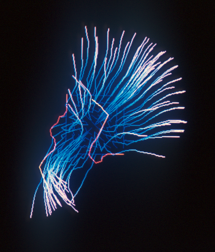 Animation recorded on March 10th 2022. Experimenting with making the cross section of the trail markers more circular to see what patterns would be made when moving through the clipping plane.